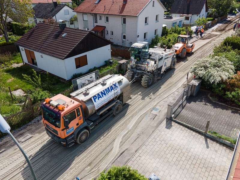 Vor Jahrzenten wurden die Siedlungsstraßen bedarfsgerecht erstellt und danach immer wieder hergerichtet. Um einen für die Anwohner kostenintensiven Vollausbau zu vermeiden entschied sich die Gemeinde Feldkirchen für das Panmax-Verfahren um die Straße bestmöglich zu sanieren.