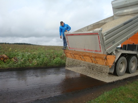 Die Zufahrt zum Waldkindergarten war aufgrund landwirtschaftlichen Verkehres, sowie den Fahrten der Eltern zum Kindergarten stark belastet. Wettereinflüsse trugen ein Übriges zum Zustand der Straße bei.